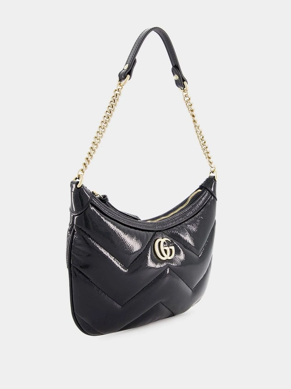 A bolsa de ombro pequena Gucci GG Marmont em preto é um acessório atemporal que combina luxo com versatilidade. Seu design elegante e couro matelassê durável o tornam adequado tanto para uso diário quanto para ocasiões especiais.